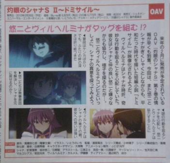 今度は、悠二とヴィルヘルミナ絡みの話らしいです。シャナがどの程度出てくるんでしょうかね・・・。カットが1つもないことから確実に出演時間は少ないと予想しています。シャナファンの方はがっかりかな?