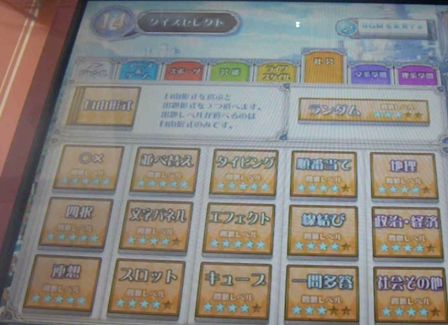 1回戦で、アニゲ(○×)を選択すると、2回戦では、アニゲ部門は全部選択不可、○×も全部選択不可・・・になります。